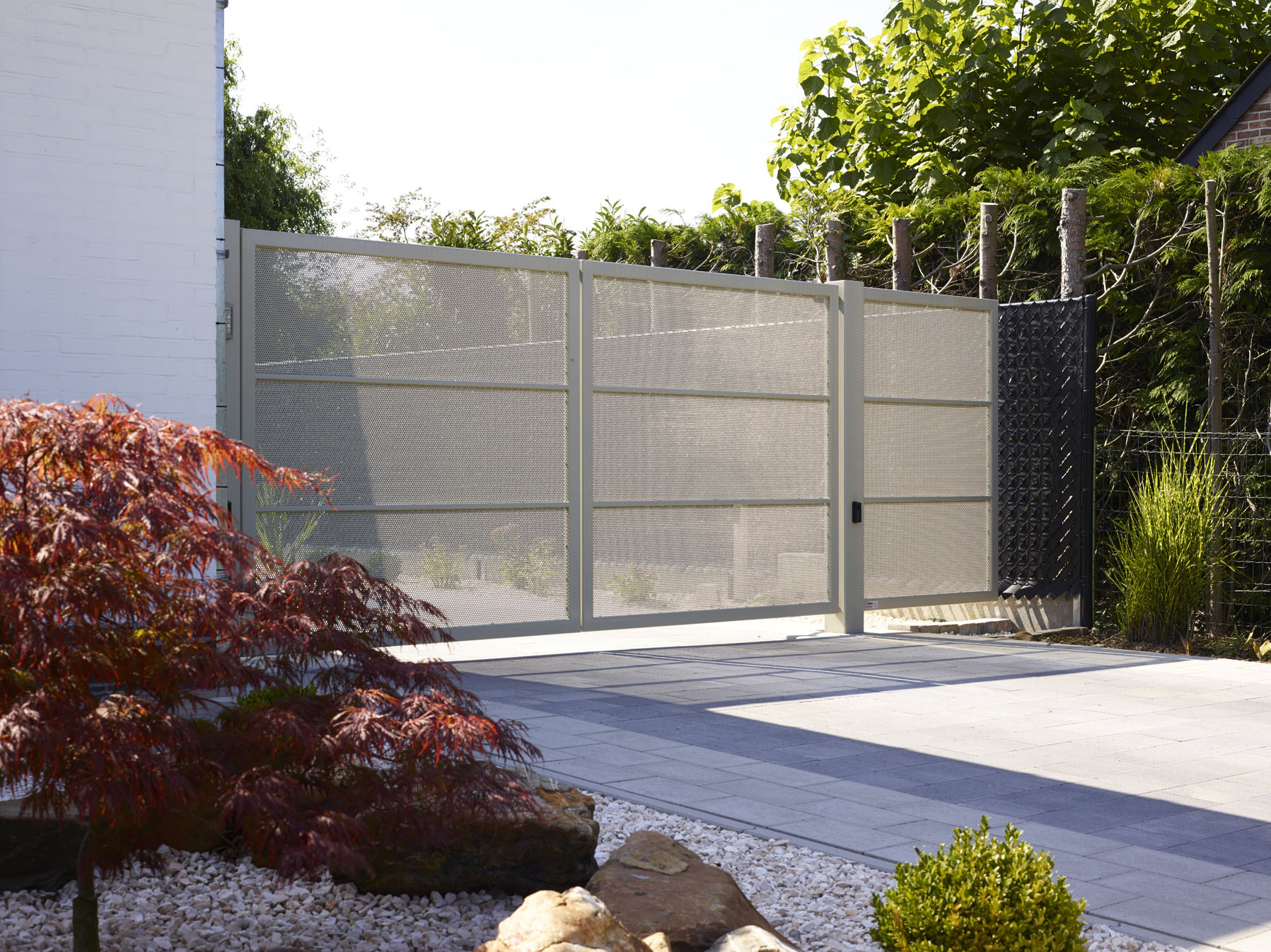 De dubbele vleugelpoort Barca bestaat uit een kokerprofiel met geperforeerde poortbladen waardoor er een lichte doorzichtbaarheid is. De verdeling van de poortbladen is afhankelijk van de hoogte van de draaipoort.